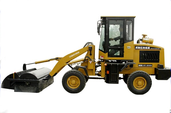 河南亿龙机械针对这一问题,结合国内外同类设备特点开发的新一代路面清扫机。该设备在小型装载机基础上改装,经济实用。采用专业, 高功效的清扫设备,替代传统大量人力低效,不安全的清扫方法,节省人力成本。该机采用封闭铲斗,清扫后的灰尘颗粒等回收到铲斗内,可以倾倒至垃圾处理点或直接装车,清洁而环保。