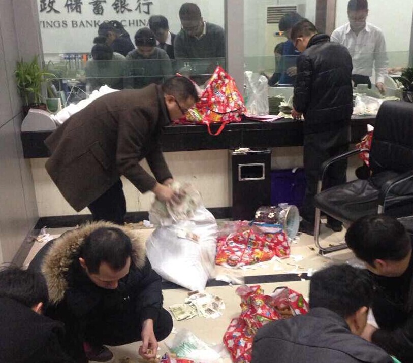 由于与银行就贷款展期发生分歧,苍南的高先生带着装了40万元零钱的多个编织袋到银行还款。前天下午,中国邮政储蓄银行苍南瓯南支行发生上述一幕,最终银行员工加班到晚上10点多才清点完所有零钱,过了一个特殊的平安夜。